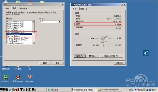 在把無線網(wǎng)卡的工作模式也調(diào)整到802.11b狀態(tài)下,讓它運行于一個低速無線網(wǎng)絡(luò)中。