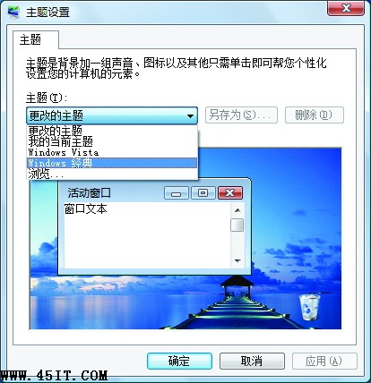 具體方法為:右擊桌面空白處,打開“個性化”設(shè)置窗口,選擇“主題”選項,在“主題設(shè)置”窗口中下拉選擇“Windows 經(jīng)典”主題(圖4),點擊確定,稍后片刻,系統(tǒng)就會被更換為經(jīng)典的界面。如此一來,雖然界面顯得有些素面朝天了,但卻可以讓系統(tǒng)運行起來更省電而且響應(yīng)速度也有明顯提高。