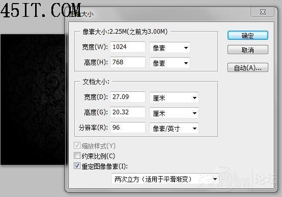 3. 將圖像尺寸改為 1024x768 dpi(點每英寸)或更低。