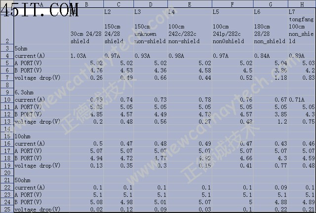 可以看出AWG值越小其直徑越大!市面上能見到的最好的USB線是24/28,為什么線徑會有差別呢?前面已經講過,USB信號線由于是差分信號,對線的要求沒那么高,所以AWG28足夠了,但大家注意了,這兩條線是絞在一起的,所以這樣的正式叫1P,如果你的線有詳細介紹,就會看見如 AWG28 1P/ AWG24 2C的字樣。但是對于電源線,由于其壓降要求,AWG28的線就不合要求了,壓降太大了,后面我們的測試中包括有一條28電源線,大家可以看出差距有多大!最好的當然是24/28,但由于線徑大一點,成本會貴不少,所以市面上常比見的線26/28、28/28、甚至30/30都有,當然這還不包括材質之分!