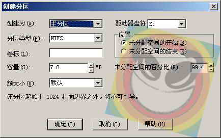 記住一定要是主選區,選擇你需要的驅動器盤符,如E。數字不用添直接默認!確定!