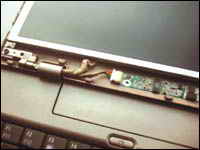 故障是出來了就是維修啊,如果是不懂電腦的人肯定就會把機器送到維修部去挨宰了。可筆者畢竟也是身經(jīng)百戰(zhàn)了,稍稍穩(wěn)定了一下心情,然后開始″擺弄″起來。經(jīng)過仔細發(fā)現(xiàn),黑屏是黑屏了,但機器好像仍然可以啟動,電源燈還是亮的,而且還可以聽到機器進入系統(tǒng)的聲音。看來不是顯卡就是液晶屏的原因了,后來又排除了顯卡的原因,畢竟顯卡都是集成在主板上的,如果顯卡壞了那主板上其它的東西還會好嗎?把本本外接一個顯示器以后證明筆者的判斷是正確的,外接顯示器能正常顯示。難道真是讓筆者最不想接受的原因-液晶屏損壞,大家都知道筆記本液晶屏的價格吧,讓我介紹一下吧?14.1英寸的屏要三千多,像筆者的12.1英寸屏稍微便宜點,但也要兩千多。如果是液晶屏壞的話可能有兩種情況,第一種就是物理損壞,表面應該可以見到裂痕、凹坑等等創(chuàng)傷。如果是這樣,需要更換整張玻璃基板才能夠解決,那筆者可真要哭了。第二種情況就是內(nèi)部元件的故障,如果是這樣的話維修起來還是比較方便的。到底是哪一種情況呢?筆者圍著本本轉(zhuǎn)了幾圈,沒有發(fā)現(xiàn)液晶屏表面有任何損傷,按照推理液晶屏應該沒什么物理損傷。那有可能就是第二種情況了,最后經(jīng)過仔細觀察終于有所發(fā)現(xiàn),雖然屏幕是黑的,但是在有光線的時候從側(cè) 面看或者把液晶屏扳到180度的時候通過仔細觀察還是可以隱約見到模糊的圖像,這樣的話數(shù)據(jù)傳輸顯示這塊還是沒有問題的。只是液晶屏的背光沒有了,看來原因是出在液晶屏的背光上。根據(jù)經(jīng)驗初步判斷,不是電源接觸的原因,就是背光燈已經(jīng)損壞或者液晶屏高壓電路板出現(xiàn)問題。