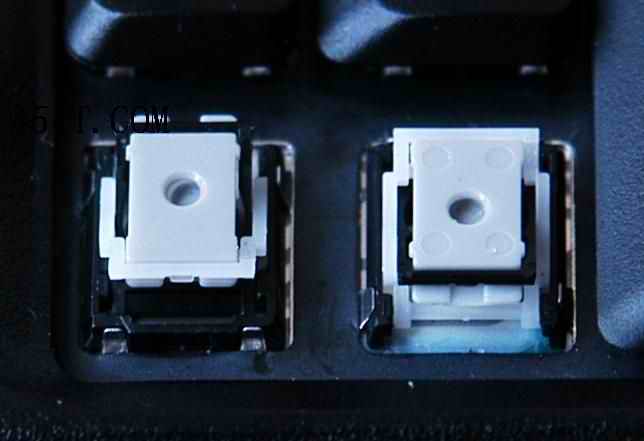 首先我們得把鍵帽取下來,方法很簡單,稍用力向斜著自己的方向一扳就可以了,不過情況可能會出現兩種結果,一個就是連按鈕的支架一起扳出來,一個就是僅僅扳出了鍵帽。下圖就是僅僅扳出鍵帽,而圖4則是連支架一起扳出來了。這都不要緊,裝回去就是了。那么怎么裝回去呢?