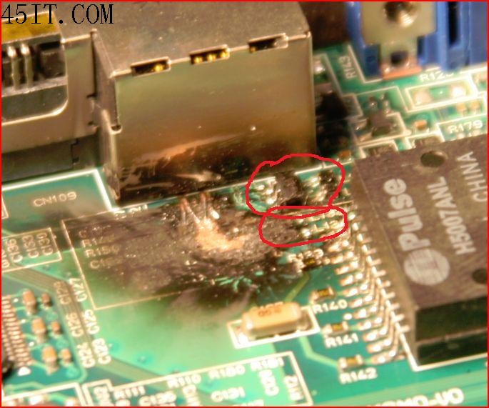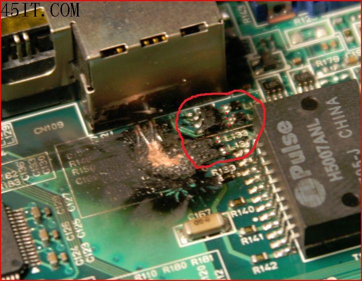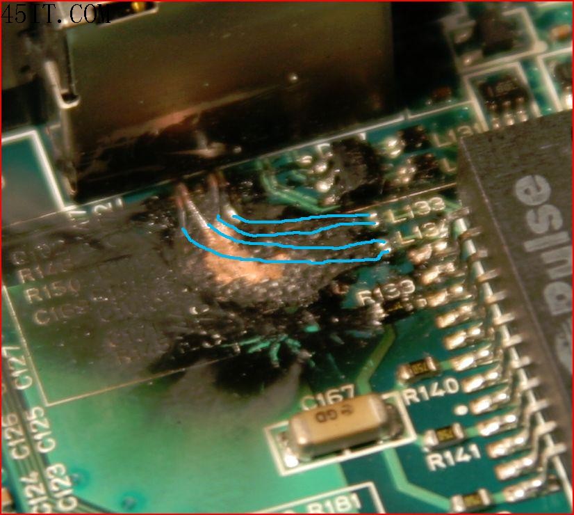 看樣子是45、78的耦合芯片燒毀了,就是和12、36對應的那個一樣,后面的L133 L134也完蛋了,
