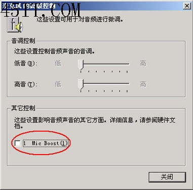 備注:通過上圖將播放中MIC靜音可以徹底解決嘯叫問題,但混音功能同時消失(如有)。如需此功能可調小播放中MIC音量,或取消麥克風錄音的MIC加強(部分機型在高級控制中帶有)以下為XP及vista截圖:XP圖示:(需要在高級控制中選擇) VISTA圖示: