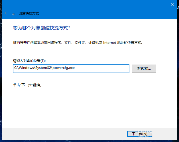 2、現(xiàn)在在桌面右鍵→新建→快捷方式,輸入C:/Windows/System32/powercfg.exe,下一步,