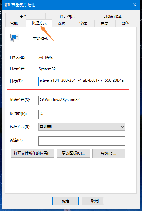 設(shè)為節(jié)能模式輸入C:/Windows/System32/powercfg.exe -setactive a1841308-3541-4fab-bc81-f71556f20b4a