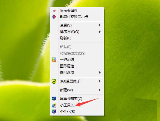 1、在電腦桌面的空白位置,單擊鼠標右鍵,選擇【小工具】