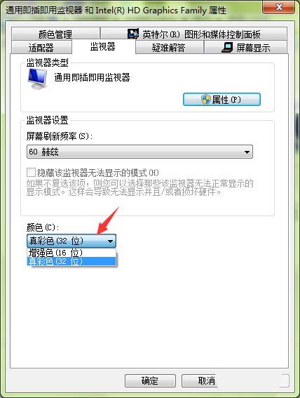 6、如下圖所示,我們將可以看到監視器下的顏色,當前有增強色與真彩色兩種選擇,根據自己的情況來進行設置即可