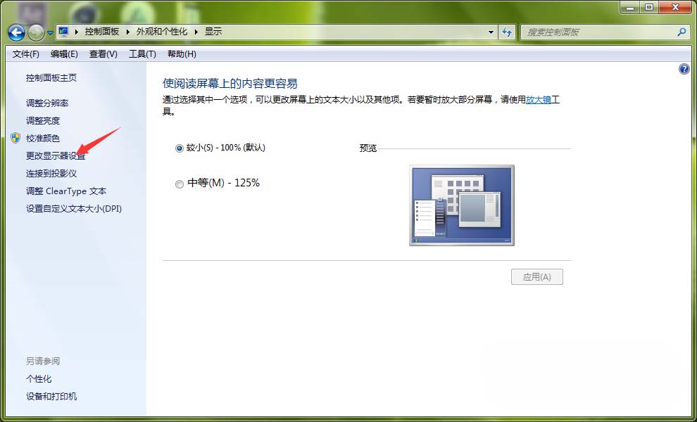 3、進入顯示設置的窗口,點擊左側欄目的【更改顯示器設置】