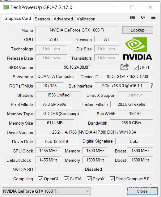 首先我們先來看一下這一代GTX1660Ti顯卡的表現。
