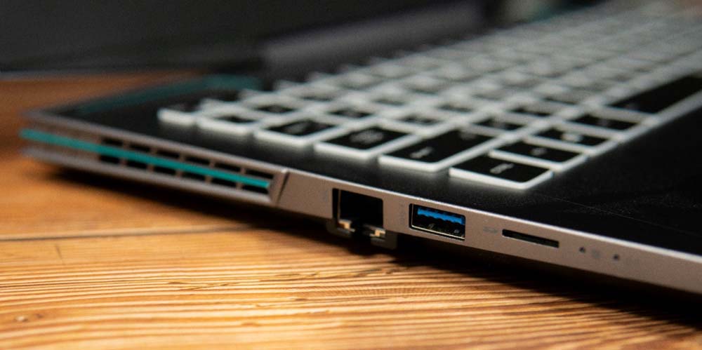 盡管機身采用輕薄設計,但雷神911 Pro鈦空版在接口配備上表現還是十分出色的。全滿貫接口滿足各種需求。一共包括3個USB3.1接口,1個TYPE-C接口,1個HDMI接口,1個mini DP接口,1組音頻接口,1個RJ45網線接口,一個SDcard卡槽接口。完全可以滿足日常的外設和屏幕外接需求。