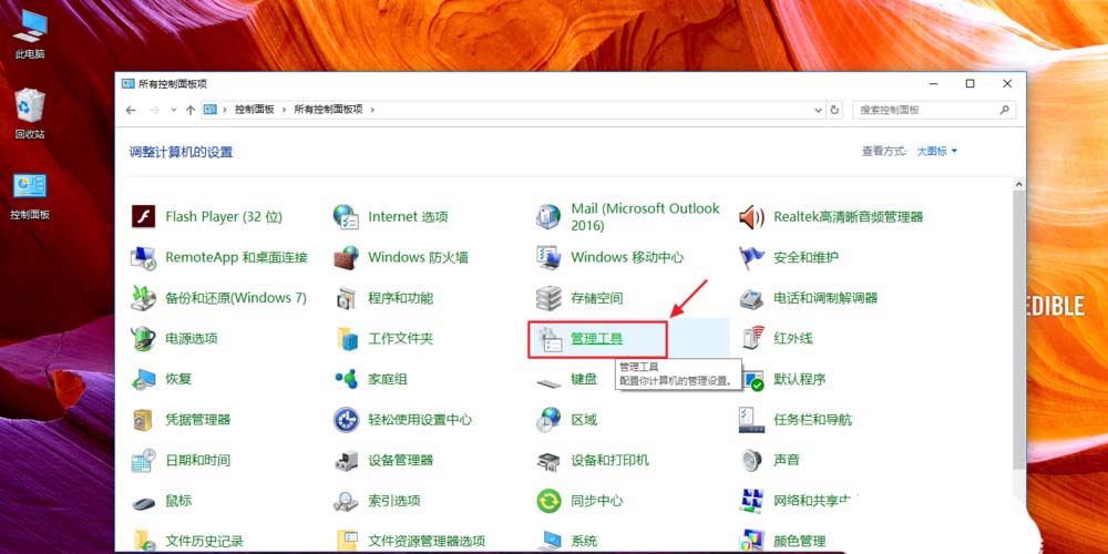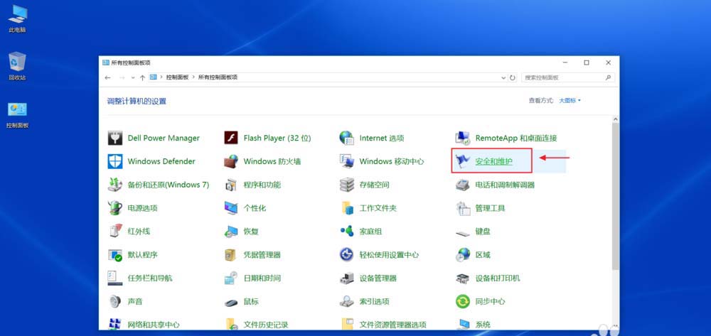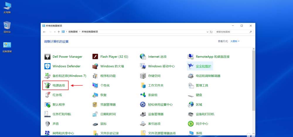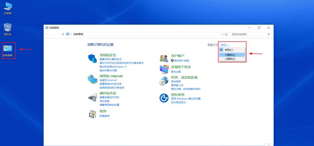 2、桌面上的控制面板——選擇大圖標