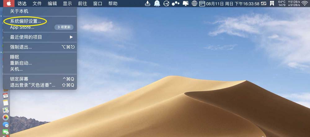 1、一般的,點(diǎn)擊訪達(dá)左邊的蘋果。