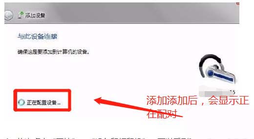 4、然后我們將我們的藍牙耳機開關打開,當我們點擊添加的時候,就會搜索附近的藍牙設備,如圖所示: