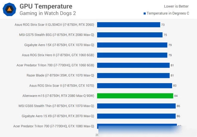 如果你已經閱讀過我們之前對GeForce RTX 2080 Max-Q的評測,你將會看到80W和90W版本在一系列游戲中的表現。然而對于外星人M15來說,情況要復雜得多,因為盡管這款筆記本電腦雖然確實有90W的版本,但在典型的場景中,它的散熱解決方案阻止了它釋放顯卡的全部潛力。