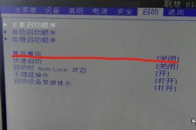 3、選擇啟動頁面,打開啟動頁面的兼容模塊(CSM),設置為開啟(Enabled)。
