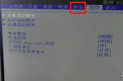 2、進入BIOS后,選擇安全,檢查安全頁面是否關閉安全啟動選項(Secure Boot),要設置為禁用(Disabled)。