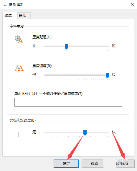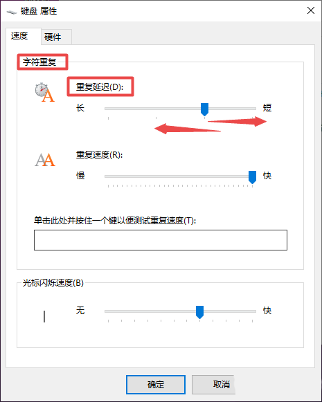 7、向左或向右調節字符重復延遲的滑動按鈕。