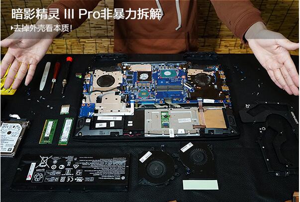 暗影精靈Ⅲ Pro官方共給出了3種不同的配置,售價最低的為搭載了Core i5-7300HQ,GTX1050Ti(4G)的版本(其余配置相同)高配版本搭載了Core i7-7700HQ,GTX1060 with Max-Q(6G)。其三款不同配置都擁有較高的性價比,再加上搭載上這塊刷新率達(dá)電競級144Hz的電競屏,整體性價比還是保持在較高的水平。那起內(nèi)部的構(gòu)造有事怎樣的呢?我們就來一起看看吧。
