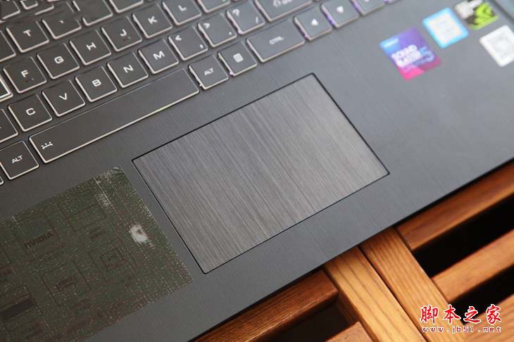 觸摸板采用金屬拉絲處理看起來顏值相當高,但是拉絲的表面處理對觸摸手感還是有一些負面作用,不過還好,游戲本用戶使用觸摸板的幾率比較有限。