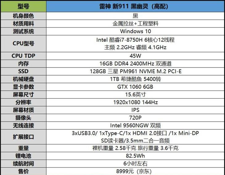 我們拿到的新911黑幽靈是高配版本,采用最新發布的酷睿i7-8750H 6核心12線程處理器。搭配16GB雙通道內存。256GB的NVME固態硬盤,1TB的機械硬盤。使用6GB顯存的GTX 1060顯卡。屏幕方面則搭載了一塊15.6英寸的IPS 144Hz刷新率電競屏。目前京東首發價8999元。而低配版本則在這個基礎上,內存縮減為8GB單通道,屏幕更換為60Hz刷新率版本,首發價7999元。