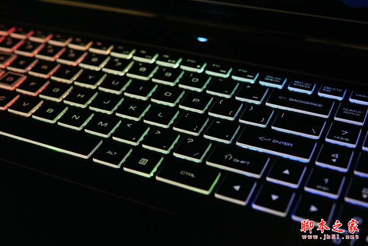 新911黑幽靈使用了天面印刷的三分區RGB背光鍵盤,可以支持1677萬色燈光調節。鍵程適中,反饋力度偏軟。