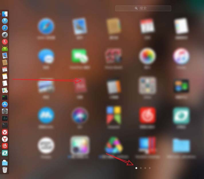 4、然后點擊圖一的圖標,然后進入到軟件列表到下面的第一個圓點的界面,四根手指放到觸控板上,往左側滑動,如果不可以滑動,那么說明關閉了儀表盤了的。