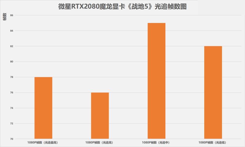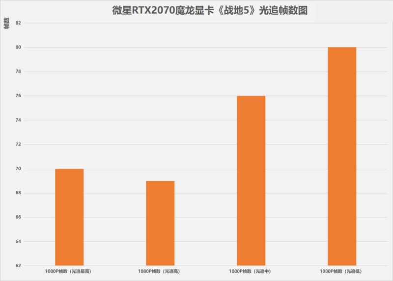 如果你還在用1080P的顯示器,那么微星2070魔龍顯卡在1080P下跑《戰地5》,最高質量的光線追蹤平均幀數也能有70幀,就算在多人游戲時也非常的絲滑了,無疑是1080P用戶最具性價比的光線追蹤顯卡選擇。