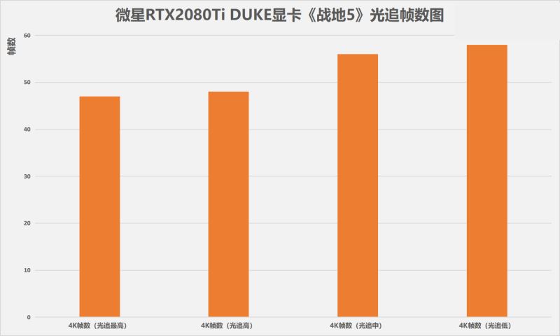 最后小編就用卡皇微星RTX2080Ti DUKE黑龍顯卡來感受一下,卡皇不愧是卡皇,4K分辨率最高質量的光線追蹤下《戰地5》優化后平均幀數已經有48幀了,將光線追蹤開到最低平均幀數逼近60幀。