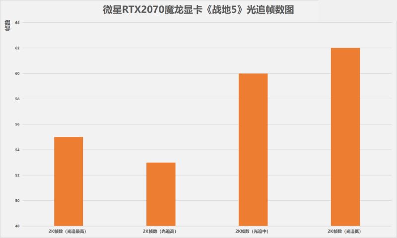 調整到2K分辨女后微星2070魔龍顯卡的幀數就突飛猛進了,看來英偉達也是沒有白優化,就算是最高質量的光線追蹤效果平均幀數也已經有55幀了。不過神奇的是將光線追蹤質量調低至高后幀數反而下降了,看來EA在游戲上還有繼續優化的空間啊!如果55幀的水平還是不能讓你滿意的話,那么就將光線追蹤的質量調整到低吧。這樣你就有平均62幀的畫面表現了,不過針對微星2070魔龍顯卡小編還是推薦2K分辨率下開啟最高質量的光追效果,算是比較平衡的設定了,因為在低光追質量上會卻是一些非主要物體的光線追蹤效果,稍微影響了一些感官,畢竟充分發揮顯卡的性能才不虧嘛!