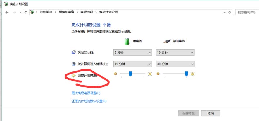 4、在更改計劃設置里邊會有各種包括休眠時間和屏幕亮度的選項。
