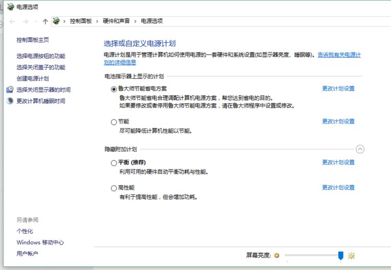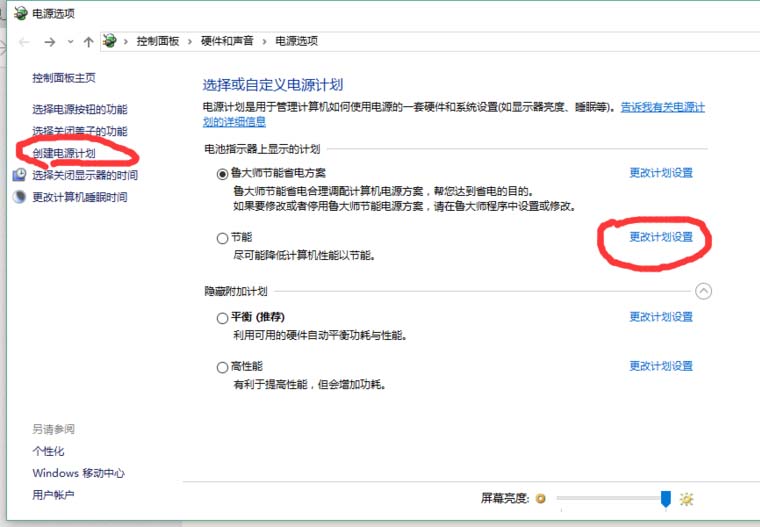 3、可以通過更改電源計劃來更改屏幕亮度和性能。也可以自己創建電源計劃