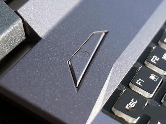 C面主要是輸入操作區(qū),這里布置著電源鍵、鍵盤、和觸控版,同時也對產(chǎn)品的主要配置信息進行展現(xiàn),在不開機的情況下,向用戶展現(xiàn)它的內(nèi)部配置。在C面的左上角是雷神ST-Plus的電源鍵,沒有采用規(guī)矩的方形或者圓形,ST-Plus的電源鍵被設(shè)計成利刃的形狀,在新奇有趣的同時似乎也預(yù)示著ST-Plus是玩家在游戲中征戰(zhàn)廝殺的利器!剩下的鍵盤和觸控板我們將在后篇的細(xì)節(jié)篇中進行具體展示,在這里我就不作過多說明了。