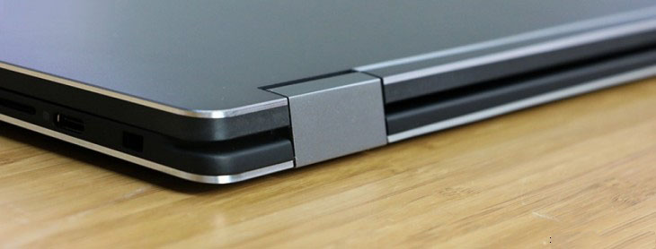 相比該機圓潤的邊角而言,XPS LAVI的轉軸方方正正的設計則顯得沒有那么融洽,其外殼為鋁合金材質,內部為鋼結構,從而保證整體穩定性。不過轉軸部分并不是我們關注的重點,重點則是憑借這個轉軸可以讓XPS LAVI實現多種工作模式。