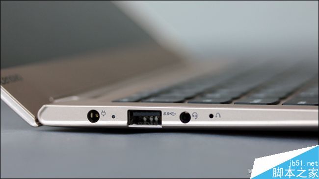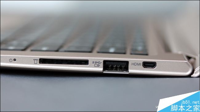 當然,超薄的機身也并非沒有缺點,那就是讓ideapad 710S沒有空間去安置更多的接口。由于ideapad 710S采用了機身采用了楔形設計,從后往前越來越薄,所以能容納接口的只有靠近轉軸的部分區域。