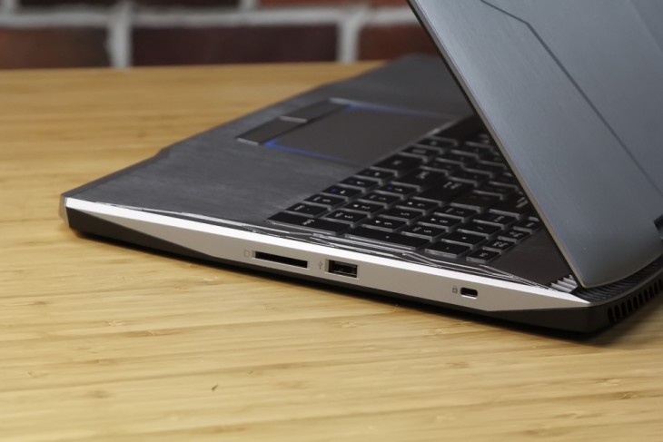 機身右側(cè)配置了一個SD卡讀卡器,一個USB 3.0接口,以及防盜鎖孔。