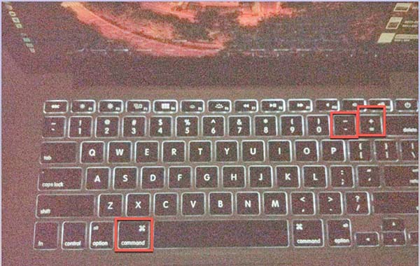 5、接著在需要放大的屏幕的一塊,先將鼠標光標放到對應的位置,然后按鍵盤上面的cmmand+=或者cmmand+-,接著就會縮放位置。第二種是按住cmmand,然后雙指在觸控板上面上滑或者下滑,對應相對的放大或者縮小。