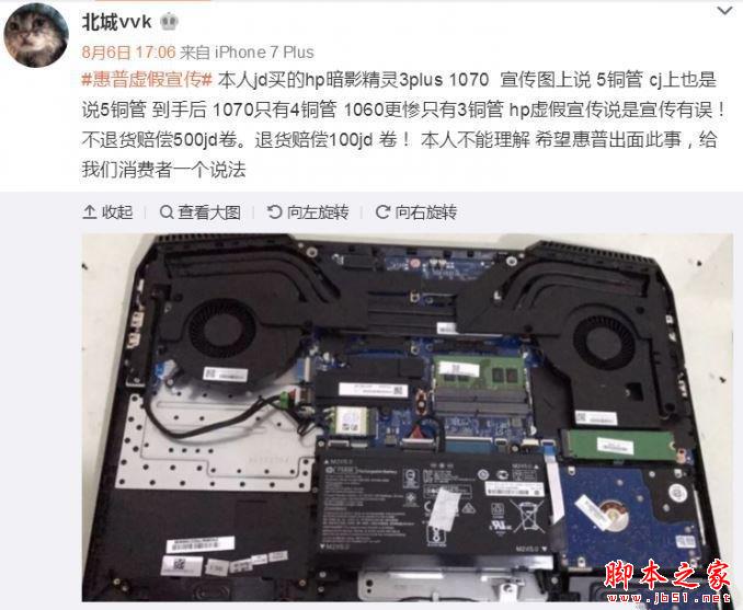 8月份某品牌游戲本熱管虛標(biāo)事件(圖片來(lái)自網(wǎng)絡(luò))