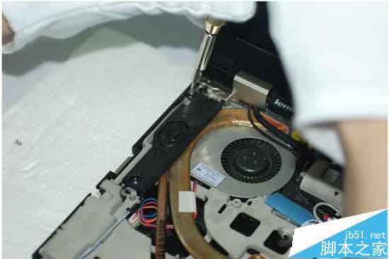 想取出散熱模塊,必須要把上方的揚聲器單元拆下來才可以。