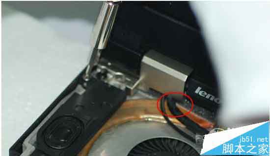 轉軸處的排線(紅圈部分)。前一段時間看T410的評測,發現兩個網友的對話很有意思,在這里解答一下,T410的轉軸確實比之前的T系列稍大一下,轉軸為實心型。加粗后并不是為了走更多的線纜,在最右側的部位才是空心的,剛好能容屏幕與無線的排線穿過。左側的轉軸空心部分在內部右側,右側的轉軸空心部分在內部左側。