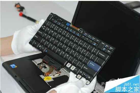 螺絲都擰完了后,轉戰到機身鍵盤區,拆解鍵盤后才能進行下一步動作。ThinkPad的機型都是這樣的,鍵盤取下來的時候需要小小的一點蠻力,注意不要過勁兒啊,不然橫容易損傷機體的。