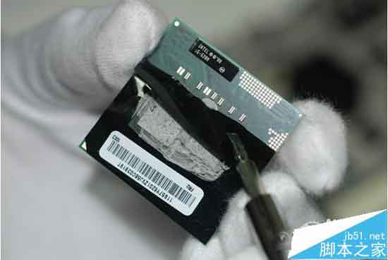 下面有硅膠涂抹的部分便是兩大核心硬件,顯卡與處理器,保護的很嚴實,上面還有黑色的塑料薄膜層,中間位打孔型,只為露出部分便于與散熱模塊直接接觸~!