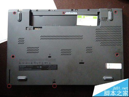 3、翻過筆記本,摳掉電池,將如圖所示的八個螺絲擰松,不必完全擰掉,只要感覺已從螺絲孔中擰掉就可以了。
