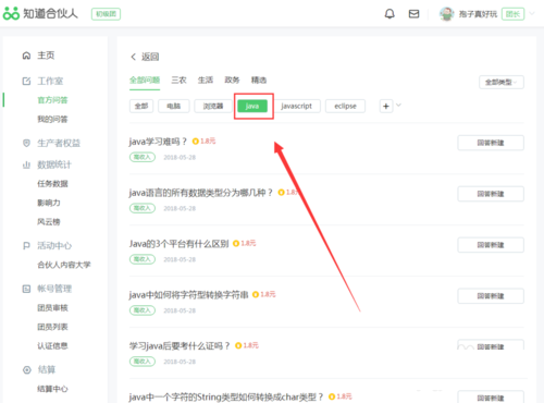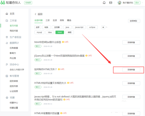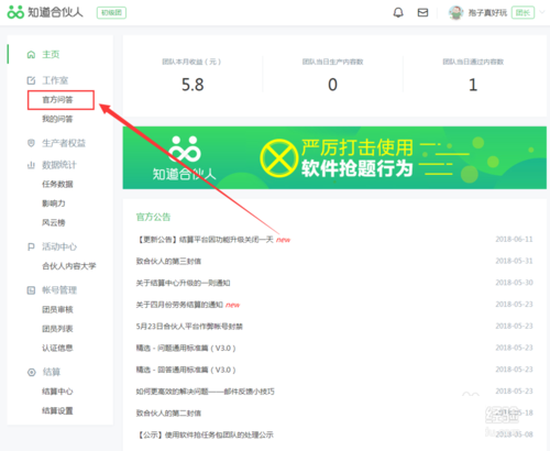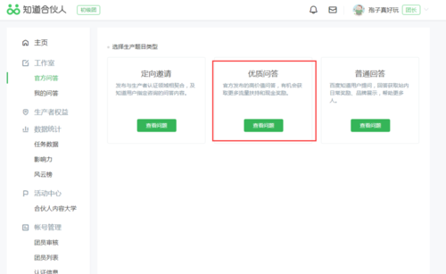 如果已經(jīng)加入合伙人,點(diǎn)擊左上角的官方回答
