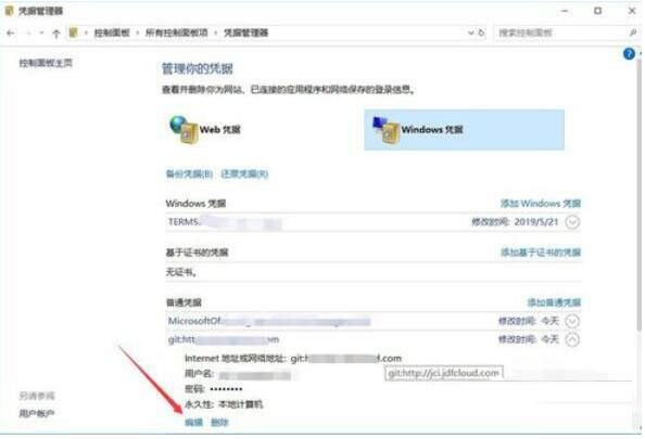 3、然后普通憑據(jù)中的要修改密碼的git地址;