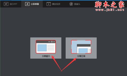 2、在騰訊課堂的初始界面上有演示PPT、分享屏幕、播放視頻、攝像頭四個功能,選擇分享屏幕功能
