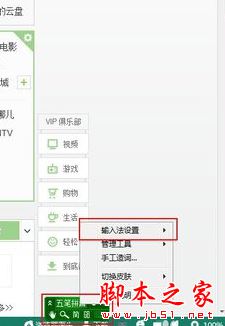 然后我們在極點(diǎn)輸入法的工具欄上點(diǎn)擊右鍵,彈出選擇菜單!選擇“輸入法設(shè)置”。