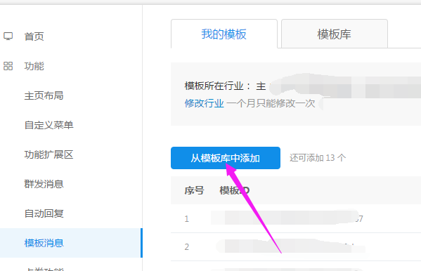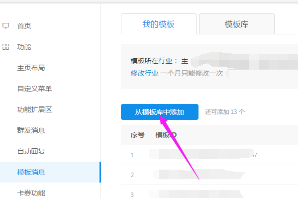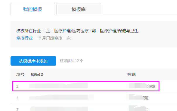6、添加成功后,在模板消息頁面可以看見這條被添加的模板消息。