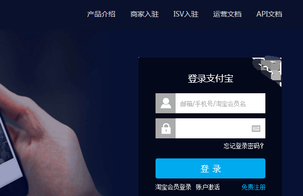 2、輸入支付寶生活號的賬號密碼,登錄開放平臺。
